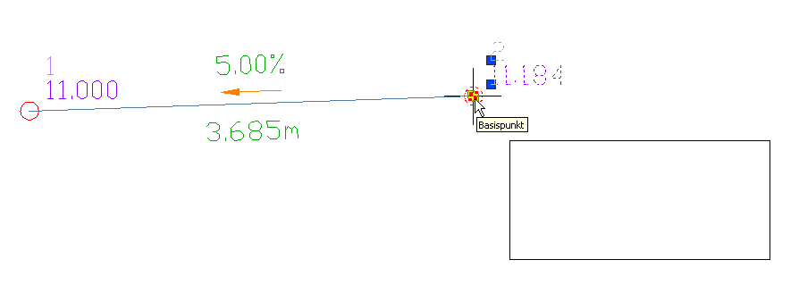 Das Rechteck befand sich auf der Höhe 0. Dadurch wurde auch die Höhe auf den Punkt 2 übertragen. Der Abstand und die Neigung wurden entsprechend aktualisiert.