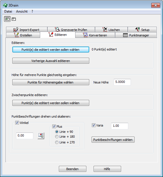 Sie können einen, zwei oder drei Punkte zum Editieren auswählen.