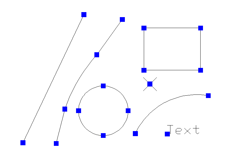 Vertices sind in AutoCAD die Stützstellen der AutoCAD-Objekte. Bei einer Linie oder bei einem Bogen sind der Anfangspunkt und der Endpunkt die Vertices. Bei einem Kreis sind es die vier Quadranten. Bei Texten oder Blöcken sind es die Einfügepunkte. Wenn man die AutoCAD-Objekte auswählt, ohne einen Befehl aktiv zu haben, werden die Vertices der Objekte als kleine blaue Kästchen dargestellt. 3Drain setzt 3Drain-Punkte auf die Hauptvertices der Objekte, wenn dieses Kästchen angehakt ist. Bei einer Linie wird z. B. der mittlere Vertex nicht konvertiert.