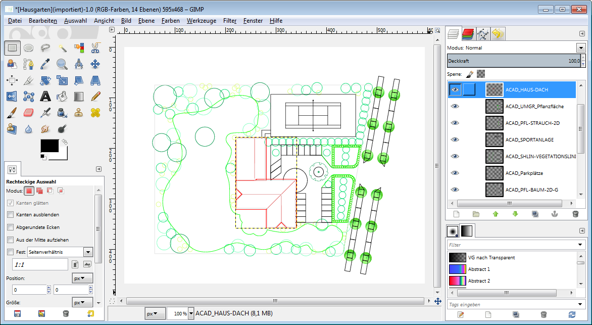 Sie können die Grafik nun nach Belieben mit den Möglichkeiten eines modernen Grafikprogramms bearbeiten, welche allesamt in einem klassischen, vektororientierten CAD-Programm so nicht zur Verfügung stehen. Dazu gehören z. B.