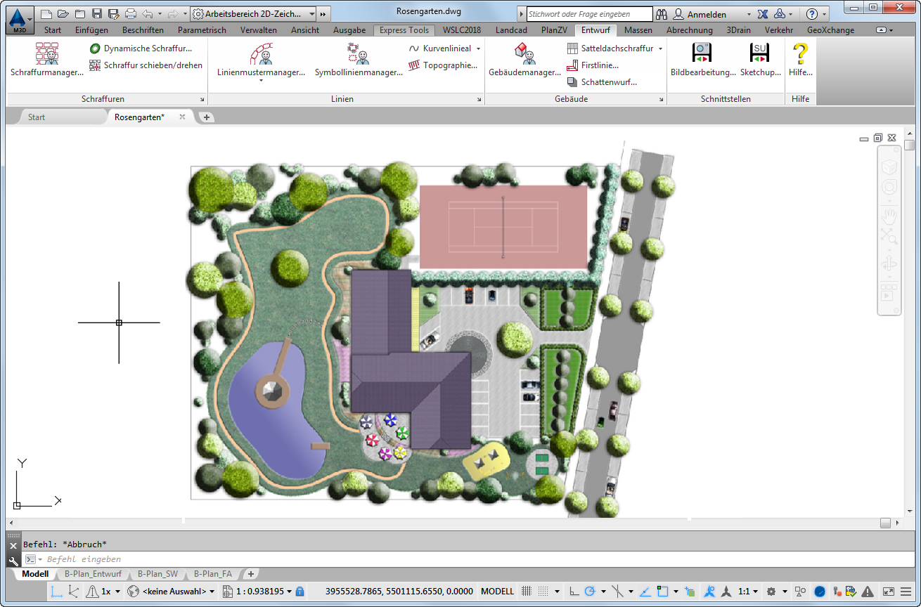 Die Bildbearbeitung aus WS LANDCAD hat hierzu die Photoshop-Datei in das zuvor festgelegte Format (z. B. TIF), konvertiert und dieses Pixelbild dann georeferenziert in den zuvor gewählten Ausschnitt eingefügt.