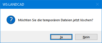 Nach dem Einfügen des Bildes in das CAD-Programm erscheint noch eine Abfrage, ob temporäre Dateien gelöscht werden sollen, was i.d.R. mit Ja zu bestätigen ist. Es handelt sich hierbei um die einzelnen Postscript-Dateien (*.eps), die der integrierte Systemdrucker WSLC-ImgPlotter aus den sichtbaren CAD_Layern erstellt hat. Falls Sie diese Dateien für andere Zwecke beibehalten wollen, beantworten Sie die Anfrage mit Nein. Sie finden die Dateien dann im gleichen Verzeichnis, in dem auch die PSD-Datei und das referenzierte Pixelbild enthalten sind.