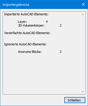 Nach der Objektwahl und der Bestätigung mit OK wird SketchUp automatisch mit einer leeren, unbenannten Zeichnung gestartet. Vor der Übergabe wird der Einfügemaßstab der Zeichnungseinheiten in WS LANDCAD temporär automatisch auf Meter eingestellt. Bitte achten Sie daher darauf, in SketchUp eine metrische Vorlage zu verwenden. Die in WS LANDCAD gewählten Elemente werden nun importiert und das Ergebnis in einem Dialog angezeigt. |