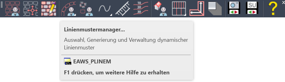 Zur Befehlsauswahl stehen je nach verwendetem CAD-System und verwendeter Konfiguration ein Register in der Multifunktionsleiste, ein Pull-down-Menü und mehrere Werkzeugkästen zur Verfügung, welche jeweils die gleiche Befehlsstruktur aufweisen.