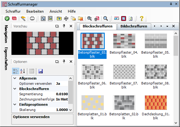 Der Bereich Blockschraffur enthält enthält folgende Eigenschaften:
