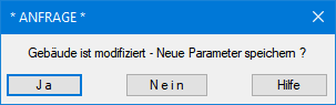 Hier können Sie alle Parameter wie gewünscht einstellen. Legen Sie als erstes die Grundform und die Dachform des Gebäudes fest. Im unteren Teil geben Sie alle erforderlichen Parameter entweder direkt ein oder greifen den Wert über die entsprechende Schaltfläche in der Zeichnung ab. Genaueres hierzu entnehmen Sie bitte dem Kapitel Eigenschaften eines Gebäudes. Über Vorschau können Sie das Gebäude vorab in der Zeichnung testen. Hier können Sie auch den Bezugspunkt ggf. neu bestimmen. Verlassen Sie sowohl den Vorschau- als auch den Hauptdialog über OK. Die daraufhin erscheinende Anfrage beantworten Sie mit Ja.