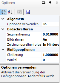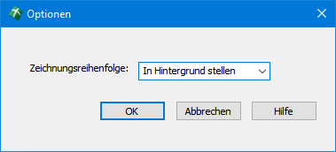 Die Optionen der Bildschraffur sind zusätzlich zum Optionsfenster des Schraffurmanagers auch über den Anwendungs- oder Editierdialog aufrufbar und beinhalten hier die Festlegung der Zeichnungsreihenfolge, da die übrigen Parameter bereits im Anwendungsdialog vorhanden sind. Änderungen der Optionen im Anwendungsdialog verändern nicht die Parameter in den generellen Optionen des Managers.