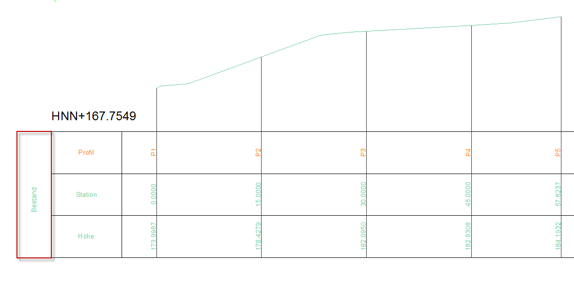 Der Geländename bzw. die Bezeichnung der jeweiligen Oberfläche ist als Beschriftung der Tabellenzeilen darstellbar. Die Ausrichtung erfolgt immer über den Bereich aller Tabellenzeilen.