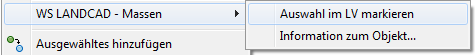 Durch den Aufruf dieser Funktion werden alle im Zeichnungseditor markierten Massenobjekte automatisch im LV markiert. Wird nur ein Objekt gewählt springt die Anzeige i. d. R. zum jeweiligen LV-Eintrag.