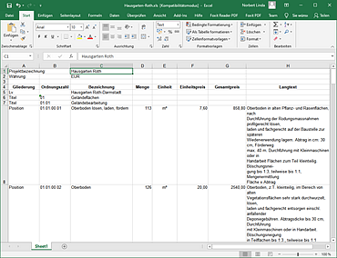 Die Excel-Ausgabe bietet die Möglichkeit, das LV in einer Tabellenkalkulation oder Datenbank zu bearbeiten. Es ist auch eine gern genutzte Möglichkeit Preise zu kalkulieren, wenn keine AVA vorhanden ist. Das LV lässt sich wie folgt steuern: