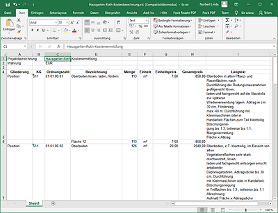 Kostenermittlung - Excel