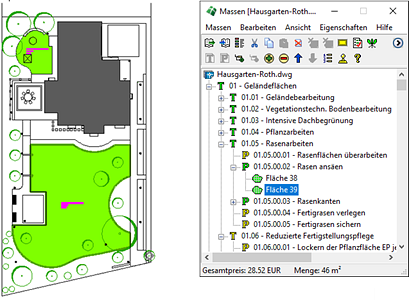 Allerdings wird er bei Änderungen der Zeichnung wieder auf die wirklichen Werte zurückgestellt, da ansonsten die Entwicklung der Massenwerte nicht mehr nachvollziehbar wäre. Sind Änderungen z. B. durch Aufrunden erwünscht, sollten diese am besten erst vor dem Export in eine GAEB-Datei oder in der AVA direkt vorgenommen werden. Die Aktivierung des Schalters Zeichnungselemente anzeigen bewirkt ein Blinken des jeweils zugeordneten Objektes, welches dadurch in der Zeichnung leicht lokalisierbar ist.