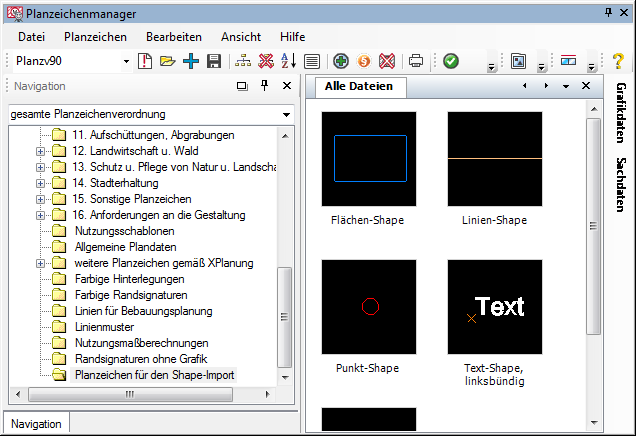Über die Bedeutung der Vorgabe-Planzeichen für den Shape-Import gibt das Kapitel Vorgabe-Planzeichen im Abschnitt Shape-Import dieses Handbuches Auskunft.