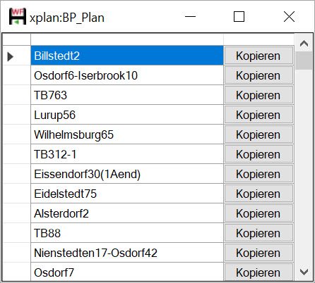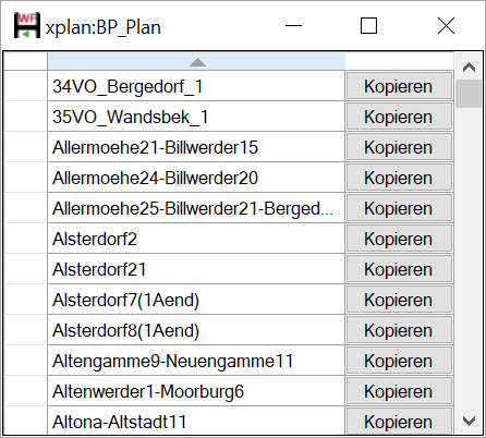 Die Liste lässt sich, genau wie die übrigen Datenspalten im Featuredialog sortieren, indem an den oberen Rand der ersten Zeile geklickt wird. Der Inhalt eines Eintrags kann durch Klick auf die Schaltfläche Kopieren in die Zwischenablage kopiert werden. Der kopierte Inhalt lässt sich dann wieder als Datenwert im Dialog Vordefinierte Abfragen einfügen. Dies ist insofern bedeutend, da sich mittels der vordefinierten Abfragen und bestimmter Feature IDs z. B. komplette Bebauungspläne importieren lassen.