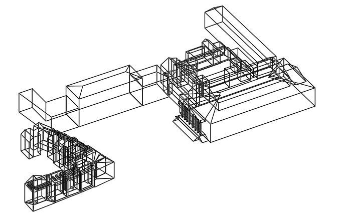 2D-Drahtkörper Von den Seitenflächen bzw. Netzen sind nur die Kanten des Objektes zu erkennen. Außerdem kann man durch die Seiten hindurchschauen. Dieser Anzeigestil erfordert wenig Rechenleistung und ist ideal, wenn man sich in großen Stadtmodellen bewegen möchte, um eine gewünschte Perspektive zu finden. |