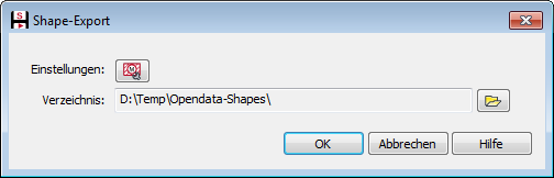 Nachdem der Auswahl-Dialog zum Shape-Export mit OK bestätigt wurde, erscheint der Dialog Shape-Export. Hier ist das Verzeichnis für den Export zu wählen, da mehrere Einzeldateien entstehen.
