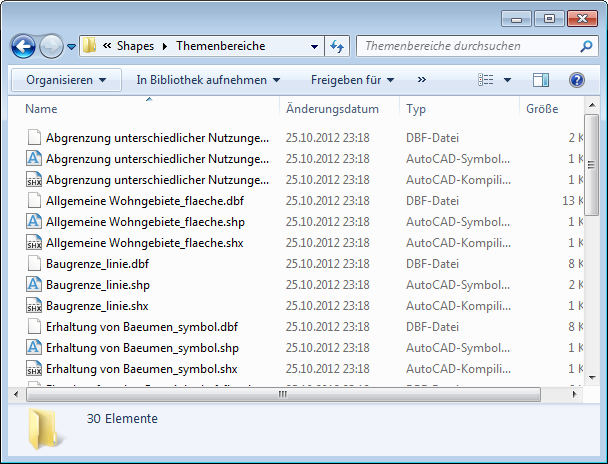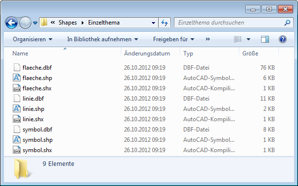 Das Resultat sind verschiedene Shape-Datensätze. Ein Shape-Datensatz besteht immer aus drei Dateien. Es liegt nach dem Export eine