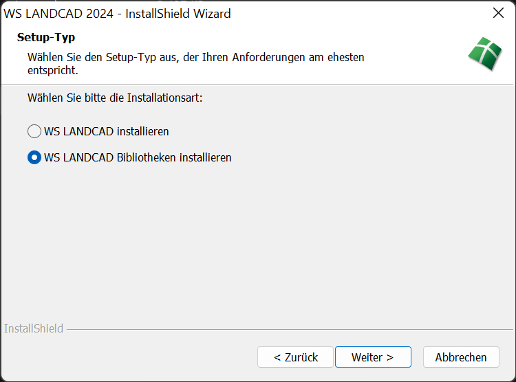 Achtung: Sie sollten die WS LANDCAD-Bibliotheken separat installieren, wenn eine gemeinsame Nutzung der Bibliothek gewünscht wird. Dies verhindert, dass durch die Deinstallation auf einem Arbeitsplatz ggf. die zentrale Bibliothek ebenfalls deinstalliert wird. |