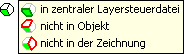 Unabhängig vom Ansichtsmodus wird jedem Layereintrag ein Zustands-Icon vorangestellt, welches die jeweiligen Layerrelationen symbolisiert. Die Bedeutung wird in einem grafischen Tooltipp erläutert, sobald die Maus auf das Zustands-Icon zeigt. Zeichnungslayer lassen sich per Konfigurationsdialog zur Verdeutlichung zusätzlich hellblau unterlegen.