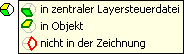 Zeigt alle Zeichnungslayer, wobei sonstige Layer, die nicht von der Layersteuerung erzeugt wurden, daran zu erkennen sind, dass sie keinen Layerschlüssel besitzen und generell ausgegraut dargestellt werden. |
