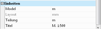 Im Feld Modell wird die zu verwendende Einheit des Modellbereichs [m oder Zoll] aus der Klappliste ausgewählt, wodurch die Einheit des Papierbereichs (Layout) automatisch gegeben ist. |