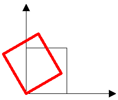 Rotation (Drehung) Bei einer Rotation wird das Koordinatensystem gedreht. Auch dieser Vorgang ist als Drehung der abgebildeten Objekte einfacher vorstellbar. In zwei Dimensionen gibt es nur einen Rotationswinkel als Parameter. |