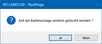 Die aktuell aus der Klappliste gewählte Kartenvorlage lässt sich durch Auswahl des Befehls Objekt → Kartenvorlage → löschen bzw. über das Icon Aktuelle Kartenvorlage löschen wieder aus der Zeichnung entfernen. Nach dem Aufruf erscheint ein Rückfragedialog, nach dessen Bestätigung die aktuelle Kartenvorlage automatisch aus der Zeichnung entfernt wird. |