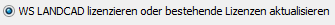 Anmerkung: Eine Aktualisierung des Lizenzschlüssels ist sinngemäß erst dann möglich, wenn zumindest ein Lizenzschlüssel vorhanden ist. Aktualisierungen sind Veränderungen in den Lizenzen, z. B. neue WS LANDCAD-Version, Veränderung der Modullizenzen oder der Konditionen (z. B. Zeitlimit). Eine Aktualisierung funktioniert prinzipiell wie eine Lizenzierung, d. h. der Schlüssel kann online oder über eine Austauschdatei aktualisiert werden. Aktualisierungen werden anhand der Schlüsselnummer durchgeführt. Die Seriennummer ist dann nicht mehr nötig.