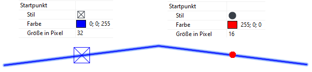 - Startpunkt – Über Stil, Farbe und Größe in Pixel lässt sich die temporäre Darstellung des gewählten Startpunktes steuern.