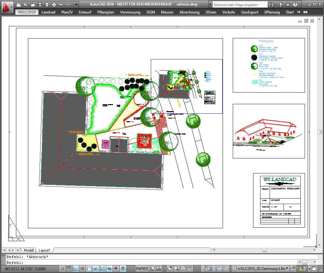 Das Planrahmen-Programm ist ein universelles Werkzeug, welches in zwei Dialogbereichen komfortable Funktionen zur Erstellung DIN-gerechter Planrahmen und Kartenausschnitte beinhaltet. Es ist zudem ein wertvolles Layout-Werkzeug, welches bei Bedarf Schriftfeld und Maßstabsbalken einfügt sowie Faltmarken automatisch berechnet und generiert. Das Programm arbeitet sowohl im Modell- als auch im Papierbereich und passt sich automatisch der jeweiligen Umgebung an. Im Papierbereich erlaubt das Programm außerdem, Ansichtsfenster zu platzieren und deren Plotmaßstab und andere Eigenschaften frei zu bestimmen. |