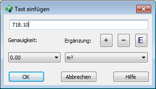 Nach Anklicken des entsprechenden Icons erscheint zunächst der Dialog Text einfügen, welcher die aktuelle Eingabezeile übernimmt und darüber hinaus die folgenden Funktionen bietet: