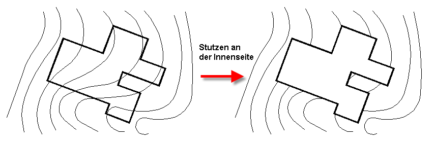 Wählen Sie zuerst die geschlossene Polylinie oder den Kreis und anschließend alle zu stutzenden Objekte. Nachdem Sie die Objektwahl bestätigt haben, fragt das Programm nach der zu stutzenden Seite. Das Programm stutzt daraufhin alle Polylinien, Linien, Bögen und Kreise auf der betreffenden Seite. Anschließend werden alle Elemente, welche vollständig auf der zu stutzenden Seite liegen und zuvor angewählt wurden, zum Löschen vorgewählt. Der Löschvorgang muss dann nur noch bestätigt werden.