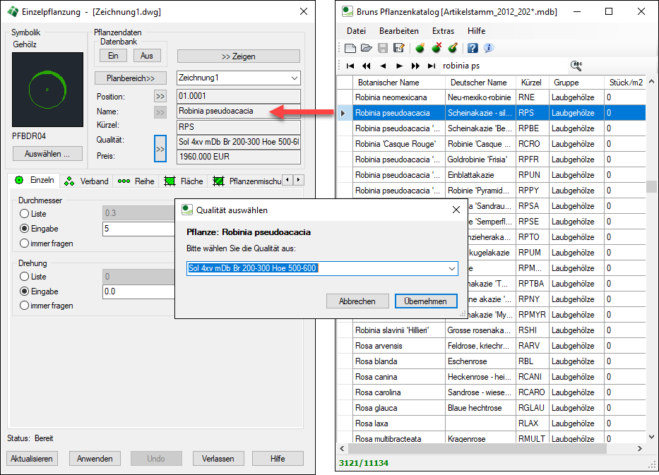 Das Erscheinungsbild und die Bedienung des BRUNS-Pflanzenkatalogs sind in den Grundfunktionen nahezu identisch mit der Pflanzendatenbank Plantus.