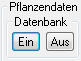 Nach dem ersten Ladevorgang schaltet sich das Programmfenster in den Hintergrund und ist in der Taskleiste von Windows am unteren Bildschirmrand als Schaltfläche vorhanden. Es kann durch Anklicken jederzeit in den Vordergrund geholt werden. Im Pflanzungsfenster sind die Schalter EIN oder AUS anzuklicken, um die Datenbank in den Vordergrund zu schalten oder wieder auf die Taskleiste zu reduzieren. |