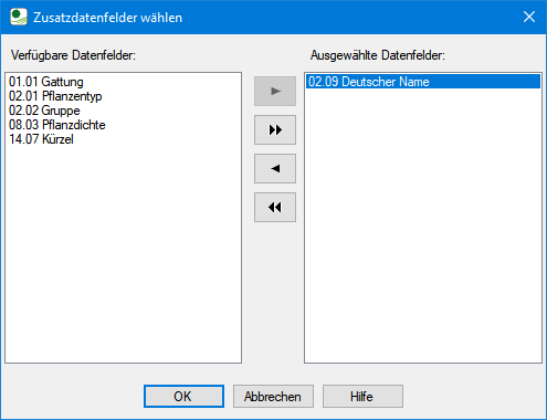 Als weitere verfügbare Felder stehen Ihnen zusätzliche Eigenschaften und Kriterien der verwendeten Datenbank zur Verfügung. |