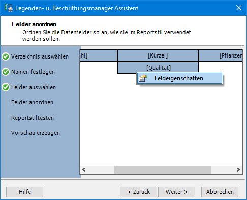 Im vierten Schritt werden die Felder des neuen Reportstils angeordnet und die Feldeigenschaften definiert.