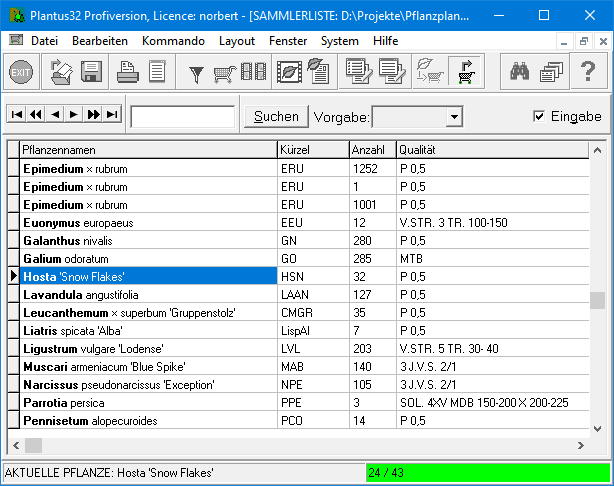 Sie können in der Positionsliste des Pflanzungsdialoges erkennen, welche Datenbank jeweils für eine Pflanze verwendet wurde.