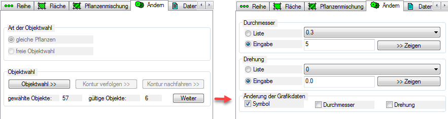 Die saubere Lösung besteht darin, vorhandene Objekte über die Funktion Ändern zu bearbeiten und allen Pflanzen einer Position eine aktuelle Grafik zuzuweisen.