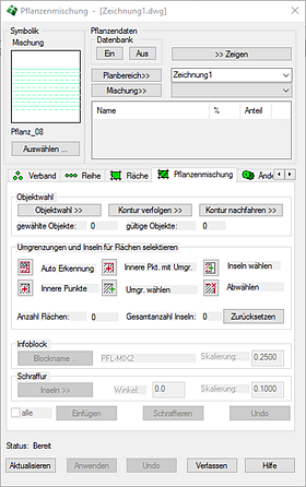 Anderenfalls erscheint die aktuelle Pflanzenmischung in der Klappliste, welche auch andere, in der Zeichnung angewendete Pflanzenmischungen, enthält. |