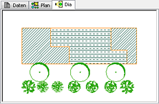 Wenn sie im Grafikfenster auf den Reiter Dia wechseln, wird das Dia zum aktuellen Pflanzschema angezeigt, welches auch im Manager sichtbar ist. |
