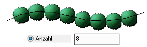 Die Anzahl bestimmt die Gesamtzahl der Pflanzen, welche entlang der Polylinie in einem gleichmäßigen Abstand eingefügt werden. |