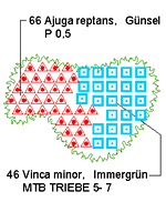 • Sammelwahl ohne Führungslinie – Die Sammelwahl dient zur Auswahl und Beschriftung beliebig vieler und unterschiedlicher Pflanzen, da kein Objektwahlfilter verwendet wird. Nach der Wahl werden Sie nacheinander aufgefordert, die Beschriftungen für die jeweiligen Pflanzen frei zu platzieren. Gleichzeitig werden die jeweils zugehörigen Pflanzen ausgegraut dargestellt, damit Sie sie leichter identifizieren können. Sammelwahlen werden v. a. bei Pflanzgruppen oder auch generell zum zügigen Beschriften verwendet. Führungslinien können bei Bedarf später manuell gezeichnet werden. Die Beschriftung ohne Führungslinie ist immer automatisch waagerecht.