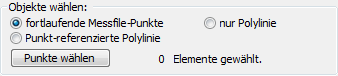 Achtung: Bei den Auswahloptionen fortlaufende Messfile-Punkte und Punkt-referenzierte Polylinie erfolgt keine Erstellung automatischer Auf-/Abschläge. Die hierzu notwendigen Figuren müssen mit der Funktion Auf-/Abschlag manuell erzeugt werden.