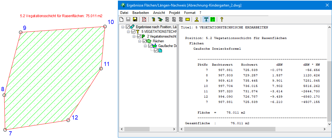 Beispiel einer Flächenberechnung mit vorhandenen Messfile-Punkten