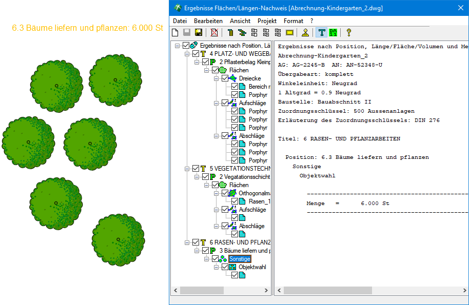 • Erläuterung (Erl.) – Die Erläuterung erlaubt es, das berechnete Objekt näher zu bezeichnen. Dies ist v. a. dann sinnvoll, wenn die Position, z. B. bei Erdmassen, anderweitig nachgewiesen wird. Hier könnte dann z. B. ein Verweis auf dem Nachweisdokument stehen. Für Flächen- oder Längenberechnung ist z. B. auch die Anmerkung Übernahme aus CAD sinnvoll, da ja kein rechnerischer Nachweis erfolgt.