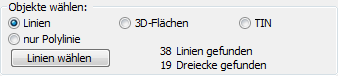 Dreiecksnetze aus Linien können z. B. aus verschiedenen Vermessungsprogrammen oder auch der Übernahme aus modernen Totalstationen stammen. Kennzeichnend ist hierbei, dass auch die Dreiecksseiten benachbarter Dreiecke nur aus einem einzelnen Objekt (Linie) zu bestehen brauchen. Es werden aber auch Dreiecke mit doppelten Kanten unterstützt.