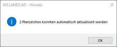 - Nach der Bestätigung erscheint ein Hinweis-Dialog, mit der Information, wie viele Planzeichen eine Aktualisierung erfahren haben.