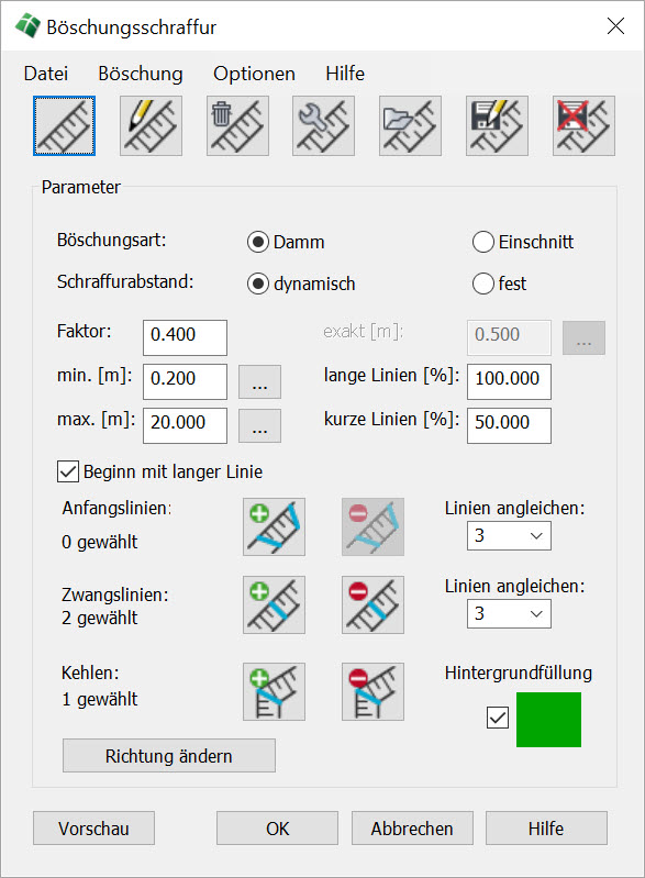 Optionen der Böschungsschraffur |