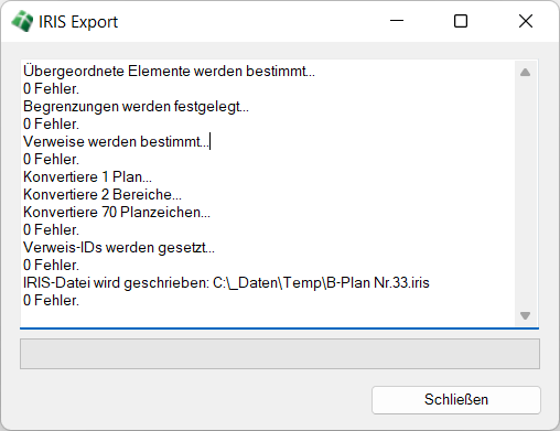 Der Export in das IRIS-Datenformat läuft in zwei Phasen ab: