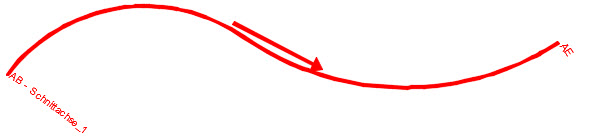 Sobald ein gültiges Objekt gewählt wurde, wird die Profilachse als dicke rote Linie eingeblendet. Ein Pfeil zeigt hierbei den Richtungssinn der Achse an. Handelt es sich beim gewählten Objekt um keine Gradiente (deren Richtung ohnehin vorgegeben ist), sondern um eine offene Kante, kann der Richtungssinn nach einer Anfrage geändert werden.